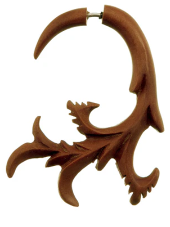 ต่างหู fake expander จากไม้ ลายเถาไม้ สีไม้น้ำตาล สไตล์ Handmade สวมใส่ได้ทั้งชายและหญิง มีน้ำหนักเบา