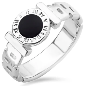 • หัวแหวนลงยาสีดำ ล้อมรอบด้วยตัวอักษรโรมัน ดีไซน์เก๋