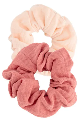 เซ็ตยางรัดผมสองเส้นผ้าฝ้ายสีขาวและสีเทอร์ราค็อตตาร์ลายตาข่ายเพอร์เฟกต์สำหรับผมทรงหางม้าและมวยผม อีกทั้งยังสามารถสวมใส่บริเวณข้อมือเพื่อความน่ารักระหว่างมัดผมได้อีกด้วย